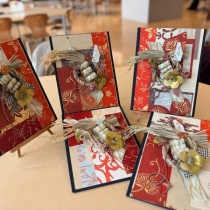追加講習いたしました、からかみ和紙を使ったお正月飾りです。サンプルはご希望もあり、ピンク系で黒のしめ飾りで作ってましたが、赤系色はやはり華やかで厳かな仕上がりとなりますね。こちらは、事前にかなりお手伝いして、パーツを作りますが、3時間弱かかりました。お腹す ...